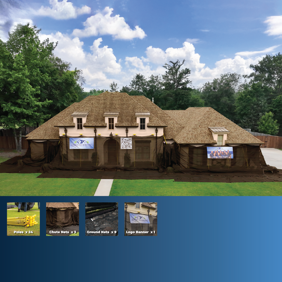 Breathable enough to allow airflow to precious flowers and landscaping, but strong enough to withstand an entire tear-off, our patented nets drastically reduce clean up time.