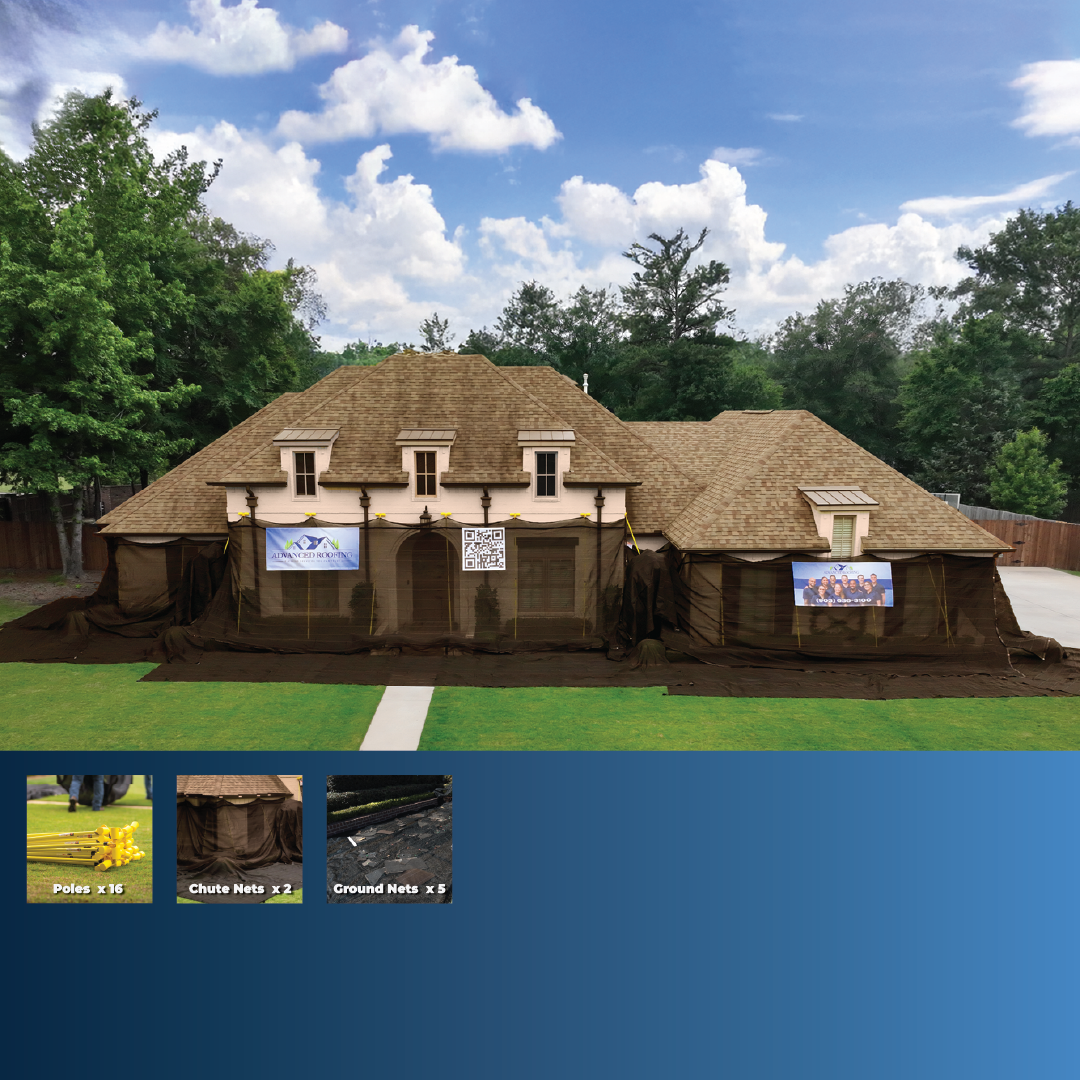 Breathable enough to allow airflow to precious flowers and landscaping, but strong enough to withstand an entire tear-off, our patented nets drastically reduce clean up time.